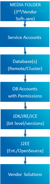 - Any software installation that require input for service accounts; passwords; or other variables will be address with an input properties file and/or script variables that will be defined at the header of the script.