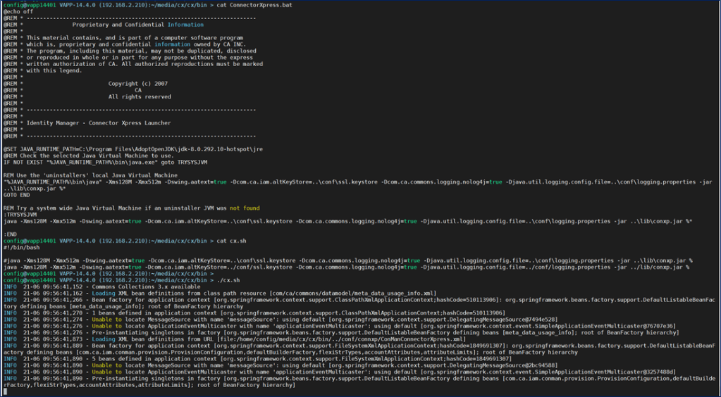 Review the startup file of “ConnectorXpress.bat” and we will create a version for Linux OS. Copy the last line with the conxp.jar file to a new bash script file. Update the file path from MS Windows format, to Linux OS format.