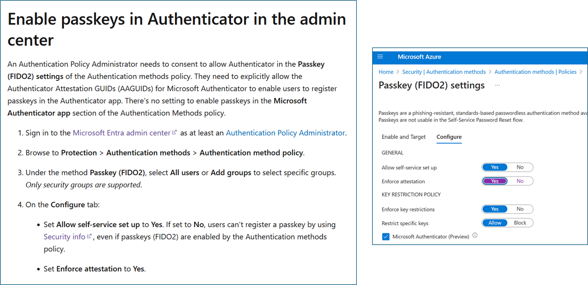 To enable Passkey (FIDO2) within O365, we had to go the admin console and enable four (4) switches.