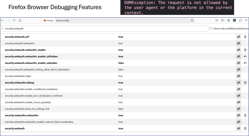 I would see these types of scary error messages when I attempt to register a passkey on my workstation.