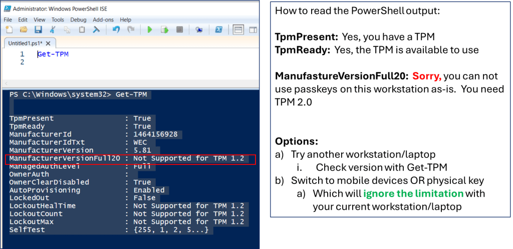 Check your version with MS Windows’ Device Manager or PowerShell command line, and type Get-TPM