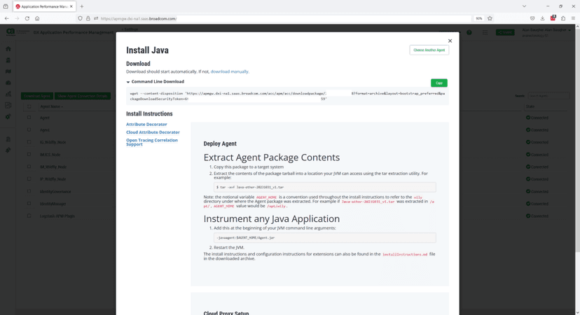APM_SAAS_AGENT_URL="https://apmgw.dxi-na1.saas.broadcom.com/acc/apm/acc/downloadpackage/XXX_SITE_ID_STRING_XXXX?format=archive&layout=bootstrap_preferred&packageDownloadSecurityToken=XXXX__DOWNLOAD_TOKEN_HERE"