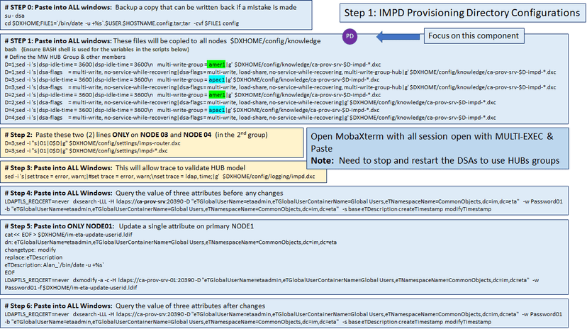 Fortunately, on the Virtual appliance, we have full access to the 'dsa' service ID and can modify these knowledge files before/after deployment. Suppose we wish to roll back or add a new Provisioning Server Virtual Appliance. In that case, we must disable the multi-write HUB group configuration temporarily, e.g. comment out the configuration parameter and re-init the DATA DSAs.