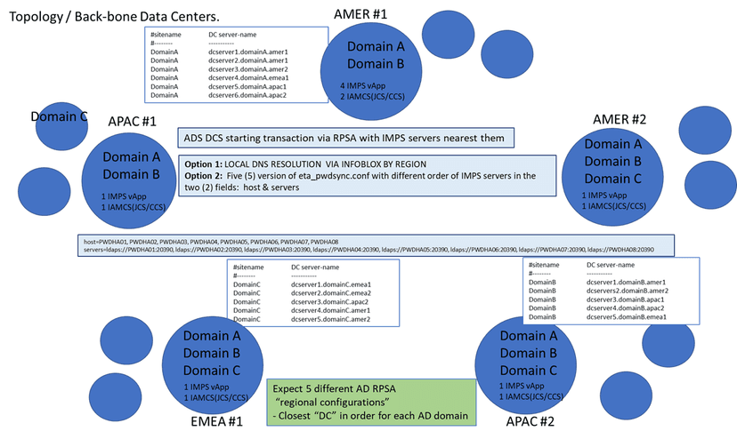Three (3) independent MS Active Directory domain in five (5) remote data centers need to allow self-service password change & allow local password sync during a WAN outage. Passwords changes are driven by MS ADS Password Policies (every N days). The IME Password Policy for IAG/IAM solution is not enabled, IME authentication is redirected to an ADS domain, and the IMPS IM Callback Feature is disabled.