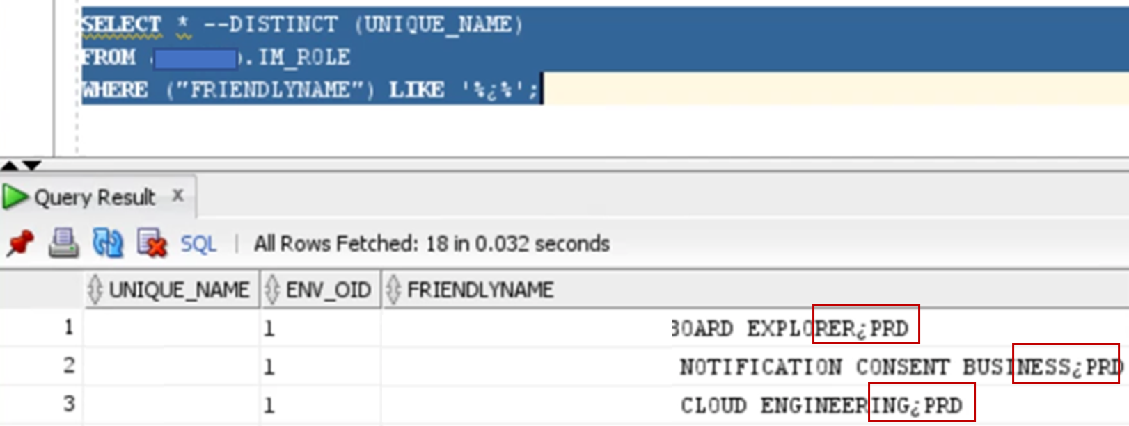 For example, if you are using an Oracle database, and you may see upside down question mark characters ¿ in your data sets, this is a strong indicator that the database is doing an auto-replacement for the special characters that it does not recognize. The below example showcases when users/administrators would use copy-n-paste operations to create new IM/IG objects, that would not be returned when searching later upon these objects, as the names would no longer match what was entered the 1st time.