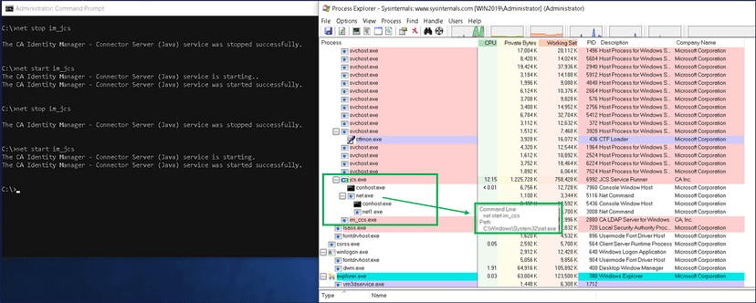 And finally a view of the startup of the CCS Service via JCS Service using MS Sysinternals Process Explorer https://docs.microsoft.com/en-us/sysinternals/downloads/process-explorer We can see that a child process is started from the JCS Service that will call the MS Windows "net.exe" command and execute "net start im_ccs"