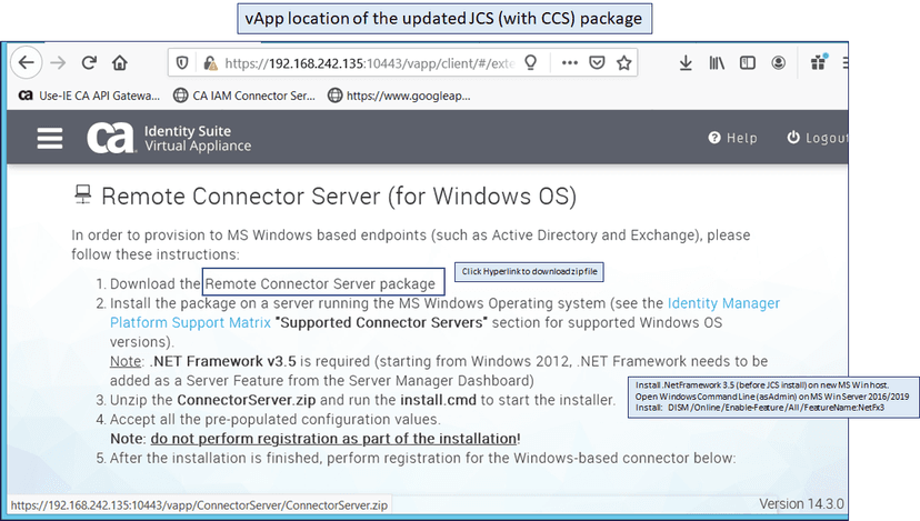 If you are using the CA/Symantec Identity Suite virtual appliance, consider after patching the solutions on the virtual appliance, to re-installing the remote JCS Services. This will avoid any confusion on which patches are deployed on the remote JCS servers. Any patches on the virtual appliance will be incorporated into the new installer. We prefer to use the JCS only on the MS Windows OS, as it can service both JCS type managed endpoints & CCS type managed endpoints together. We also have full access to adjust the behavior of these service on MS Windows OS rather than the limited access provided by the virtual appliance for the JCS service.