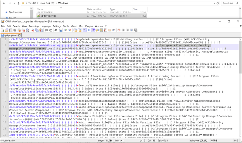 - C:\Program Files (x86)\CA\Identity Manager\Connector Server\jcs\conf\override\server_ccs.properties [File contains the bind credentials and the service port to communicate to on localhost:20402. The password hash will be PBES or AES format depending if FIPS is enabled.]