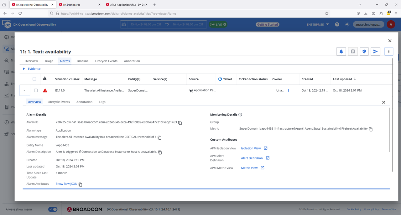 Recommend that we walk through all the possible pre-built dashboard to use and monitor/alert on your solution. Of interest, is the IM shows as the hostname of the Virtual Appliance "vapp1453" and IP shows as the internal pseudo name of "IPnode1". Note, these values can be over-written in the profile file.