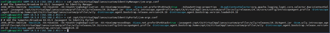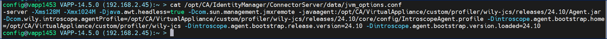 cat /opt/CA/VirtualAppliance/custom/IdentityManager/jvm-args.conf