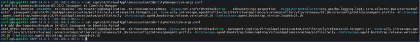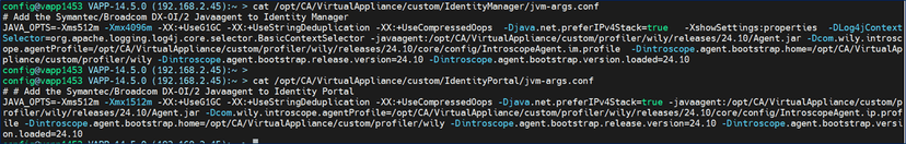 cat /opt/CA/VirtualAppliance/custom/IdentityPortal/jvm-args.conf