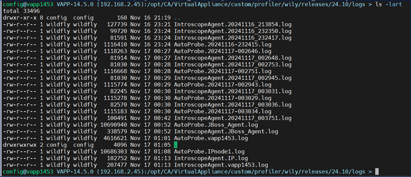 /opt/CA/VirtualAppliance/custom/profiler/wily-jcs > ls -lart