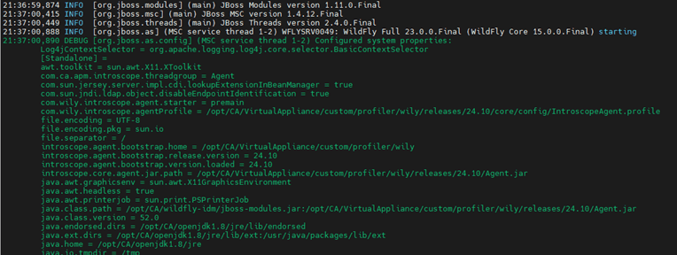/opt/CA/VirtualAppliance/custom/profiler/wily/releases/24.10/Agent.jar -Dcom.wily.introscope.agentProfile=/opt/CA/VirtualAppliance/custom/profiler/wily/releases/24.10/core/config/IntroscopeAgent.profile -Dintroscope.agent.bootstrap.home=/opt/CA/VirtualAppliance/custom/profiler/wily -Dintroscope.agent.bootstrap.release.version=24.10 -Dintroscope.agent.bootstrap.version.loaded=24.10