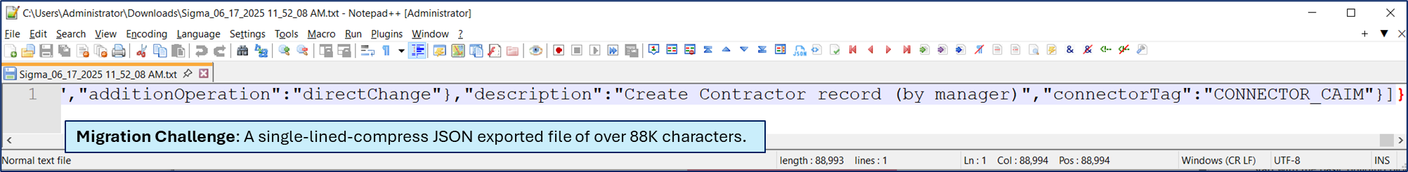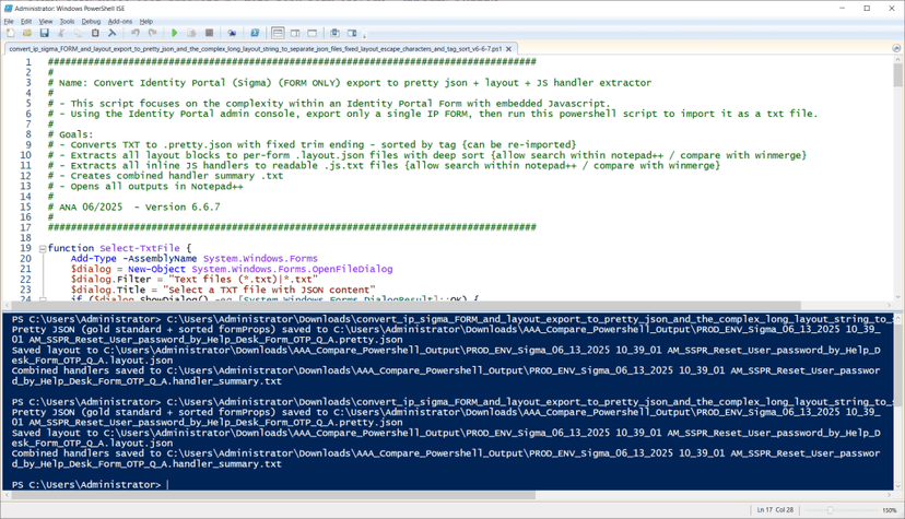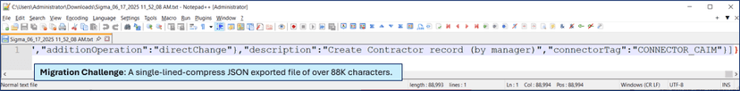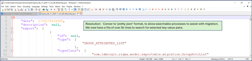 Identity Portal’s export format is a flat, one-line JSON string, even if the export contains hundreds of forms, layout structures, and java scripts.