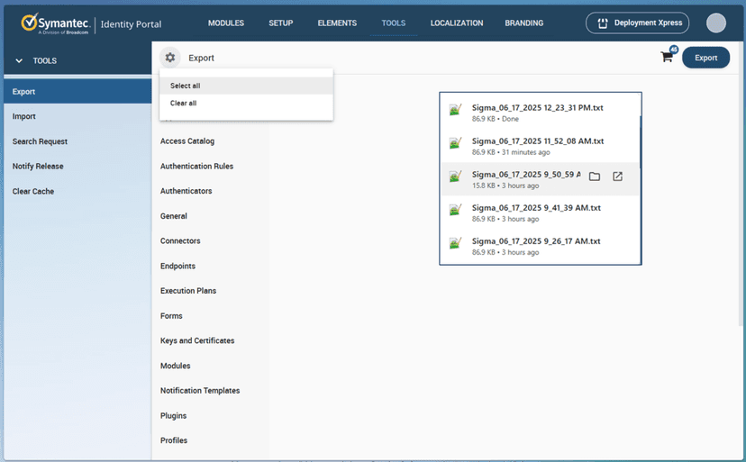 The Symantec (CA/Broadcom) Identity Portal is widely used for managing IAM workflows with customizable forms, tasks, and business logic. This tool allow its business logic to be exported within the management console.