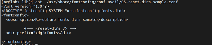sudo vi /usr/share/fontconfig/conf.avail/05-reset-dirs-sample.conf