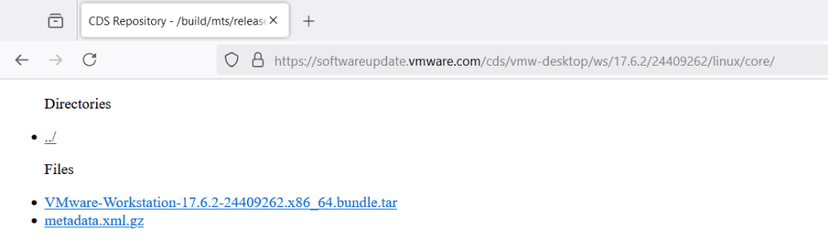 wget https://softwareupdate.vmware.com/cds/vmw-desktop/ws/17.6.2/24409262/linux/core/VMware-Workstation-17.6.2-24409262.x86_64.bundle.tar