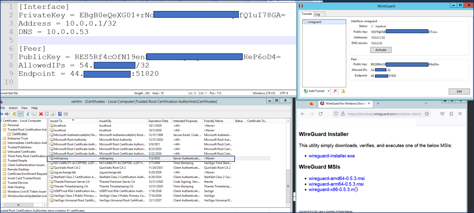- Deployment of the WireGuard VPN client on the client host (MS Win/Linux/Mobile)