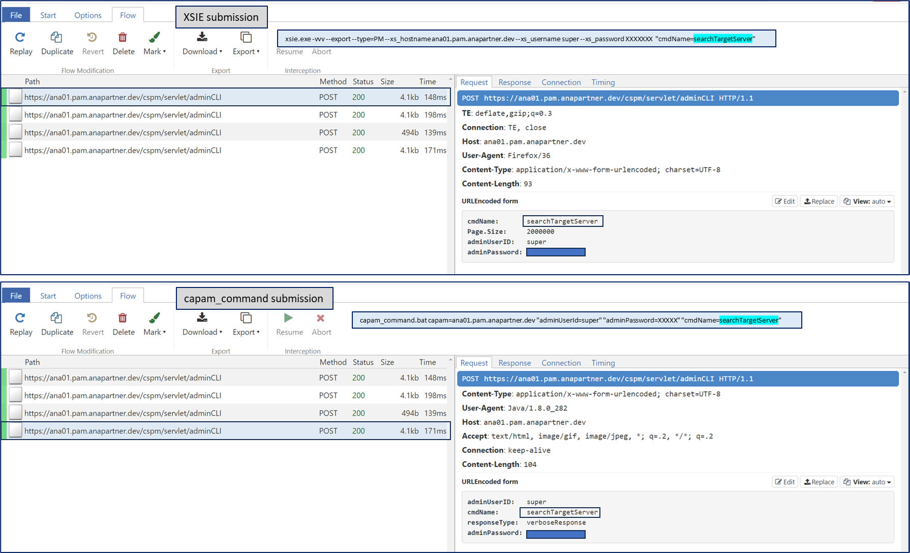 An example of data captured between two (2) CLI tools. These CLI tools did not honor the OS environmental variables of HTTP_PROXY & HTTPS_PROXY. Using the MITMproxy with WireGuard process, we can now confirm the delta submission behavior that was masked by the CLI tools. This process was useful to confirm that MS Powershell was removing special characters for a password string, e.g. ! (exclamation mark).