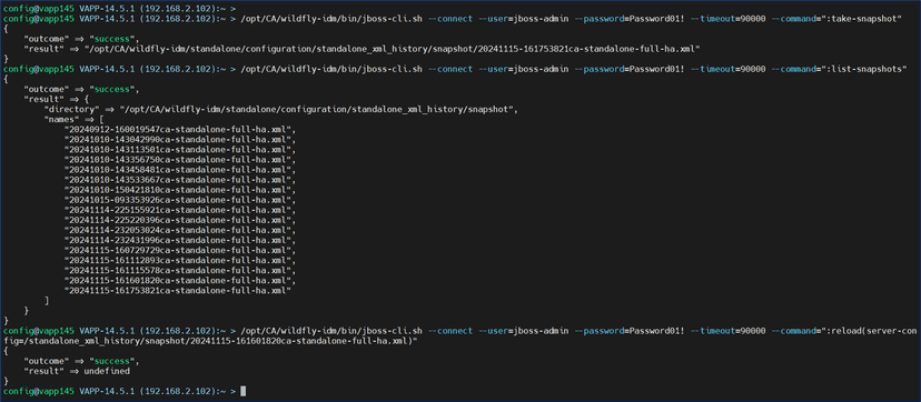 /opt/CA/wildfly-idm/bin/jboss-cli.sh --connect --user=jboss-admin --password=Password01! --timeout=90000 --command=":reload(server-config=/standalone_xml_history/snapshot/20241114-232053024ca-standalone-full-ha.xml)"