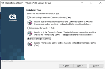 The "jump server" will utilize the standalone deployment of Symantec Identity Provisioning Server on an MS Windows OS. This "jump server" will be deployed as an "alternative server" integrated into the existing vApp Provisioning Directory deployment.