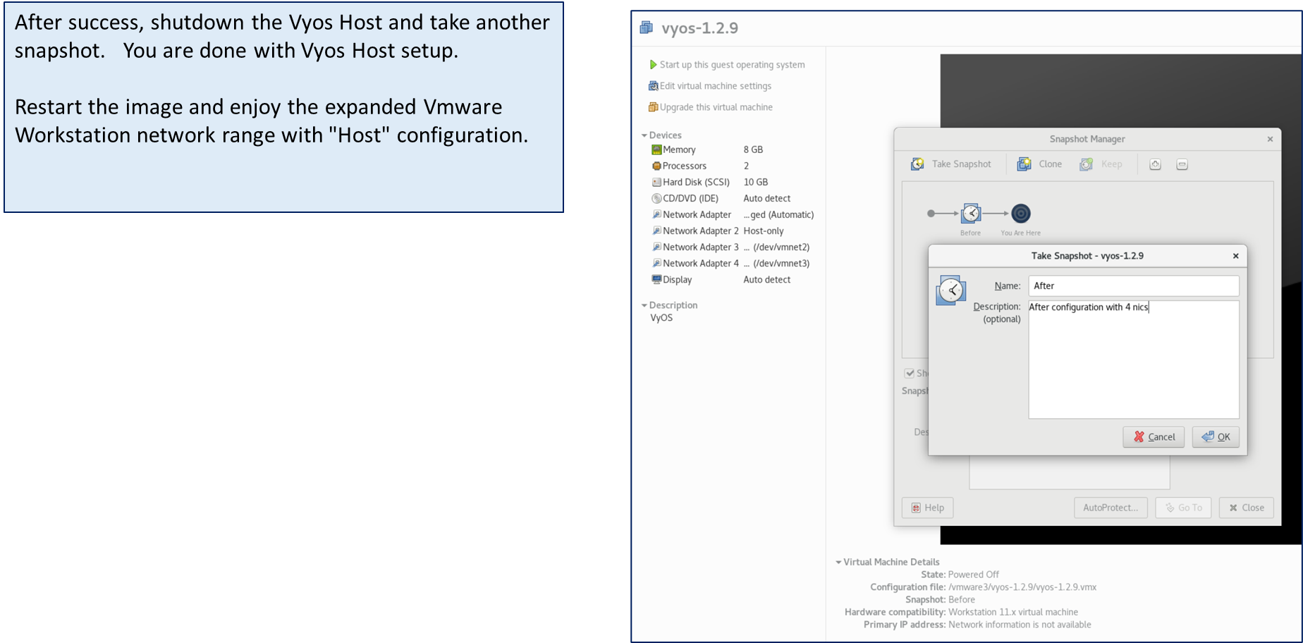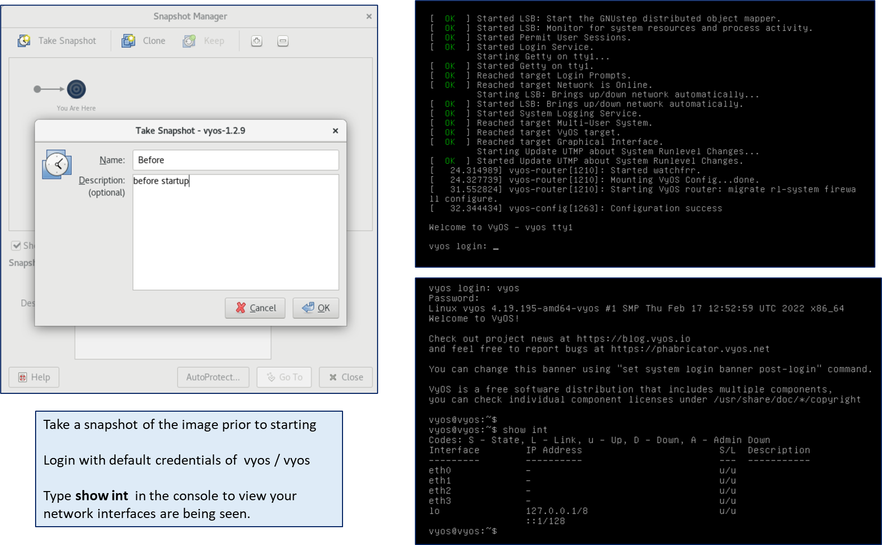 After basic validation, please snapshot your Vyos Guest OS