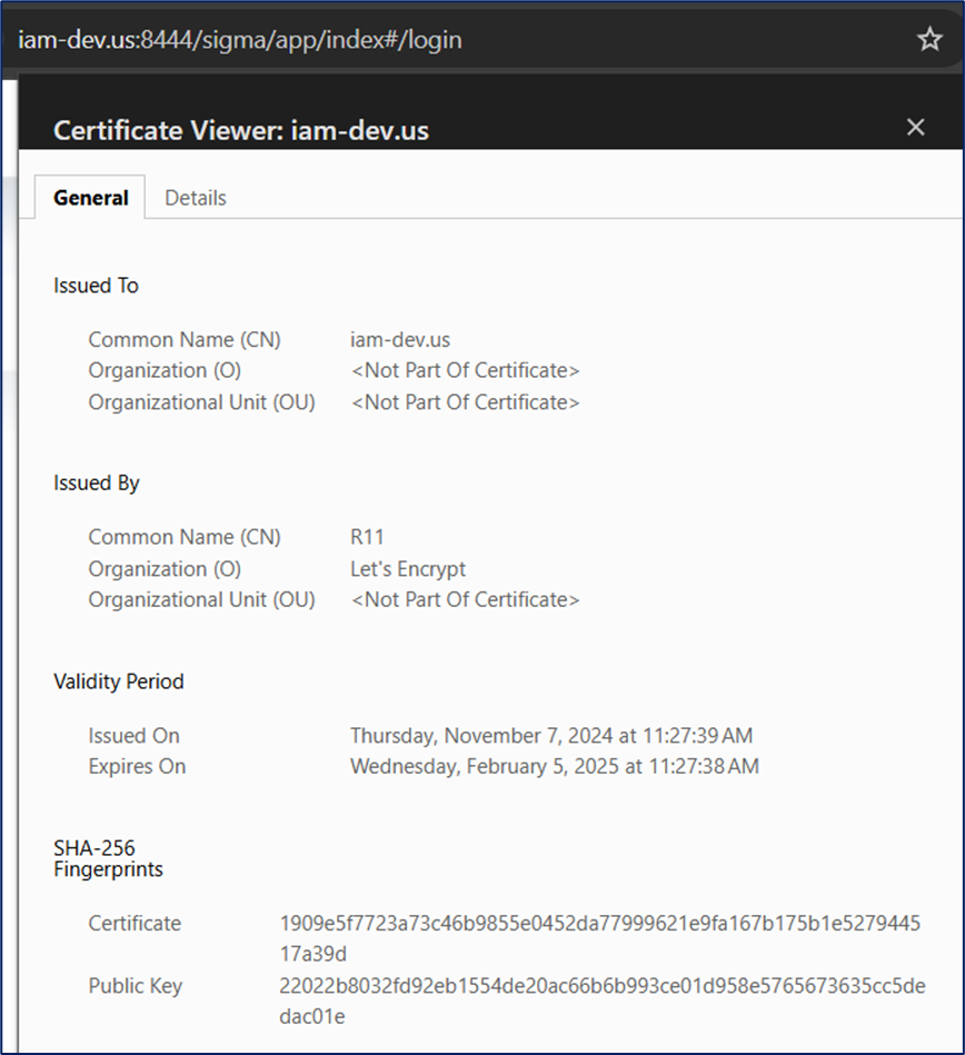 This maps any subdomain of iam-dev.us to the IP address 192.168.2.102 without needing to modify your system’s hosts file. The additional benefit is that we can map the hostname to match the CN (subject) of the TLS certificate, so we do NOT see any TLS certificate errors.
