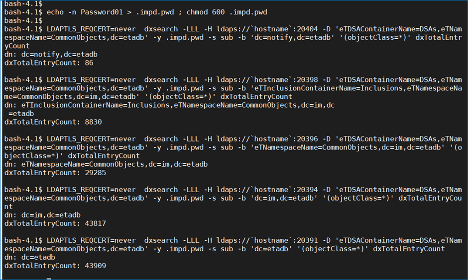 A view the ‘dsa’ service ID files with some modifications. The default .profile only has the one line that sources the file /opt/CA/Directory/dxserver/install/.dxprofile. To assist with monitoring history, instead of other direct updates, we still will use .bashrc reference to this file.