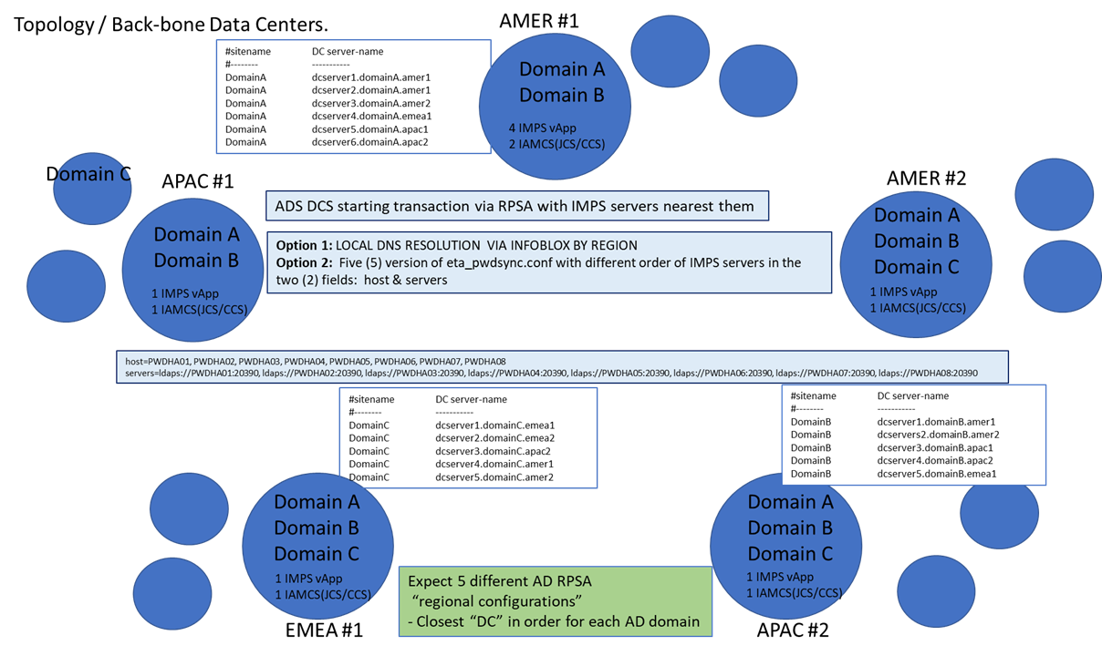 Three (3) independent MS Active Directory domain in five (5) remote data centers need to allow self-service password change & allow local password sync during a WAN outage. Passwords changes are driven by MS ADS Password Policies (every N days). The IME Password Policy for IAG/IAM solution is not enabled, IME authentication is redirected to an ADS domain, and the IMPS IM Callback Feature is disabled.