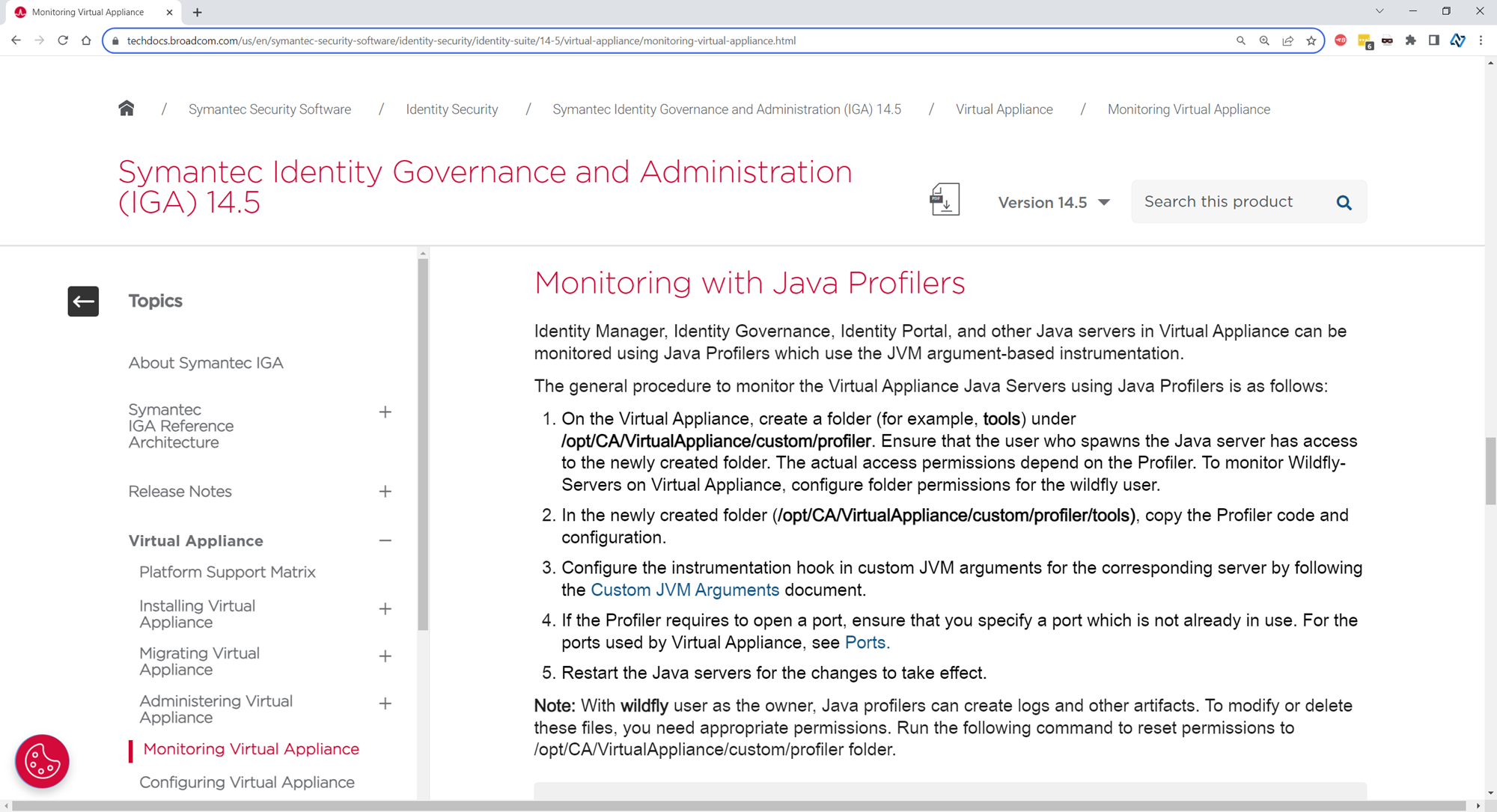 Create a local media folder, then proceed to download the DX 02 agent. After the download is successful, we will extract the agent into a known folder used on the IGA Virtual Appliance for “java profilers”. Since the files are owned by the ‘config’ user, and we need the ‘wildfly’ user to have access to the log folder, please chmod 777 to both log folders to avoid any startup issues for the Wildfly applications. You may leave the rest of the file/folder permissions as is.