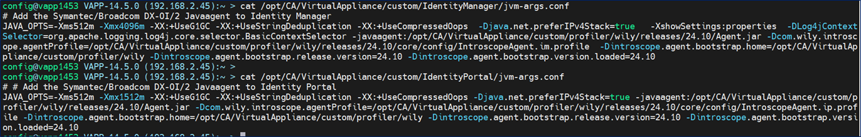 Below is a view of what the IM and IP jvm-args.conf file should look like. Please ensure the full string is at the very end.