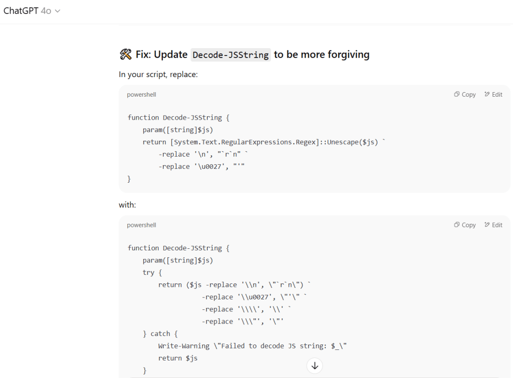 Using our understanding of the Identity Portal format for the ‘layout’ property, were able to identify methods using AI to manage the double-or-triple escaped characters that were troublesome to export consistently. Our service engagements now incorporate greater use of AI and associated APIs to support migration efforts and process modernization, with the goal of minimizing business risk for our clients and our organization.
