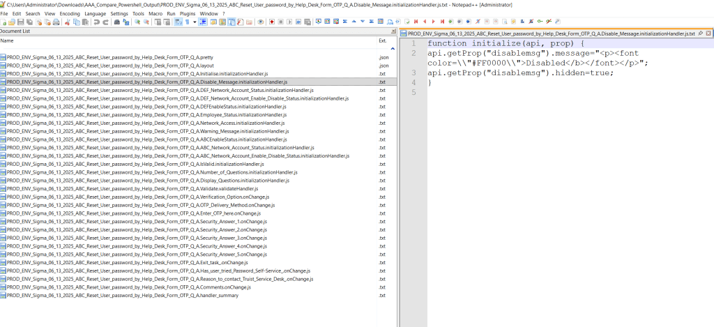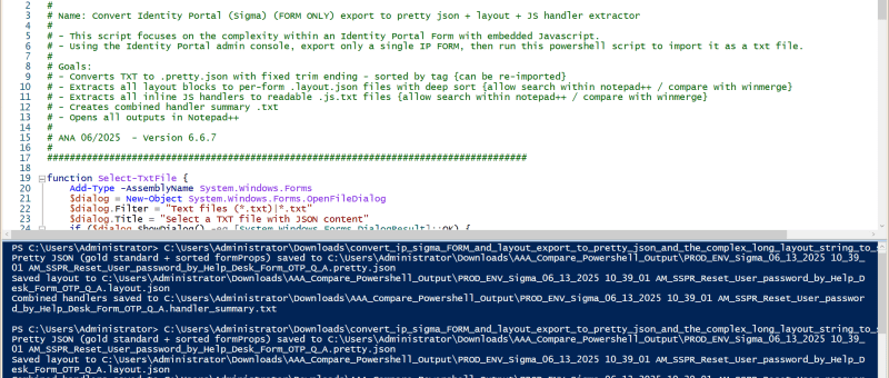 Identity Portal’s export format is a flat, one-line JSON string, even if the export contains hundreds of forms, layout structures, and java scripts.