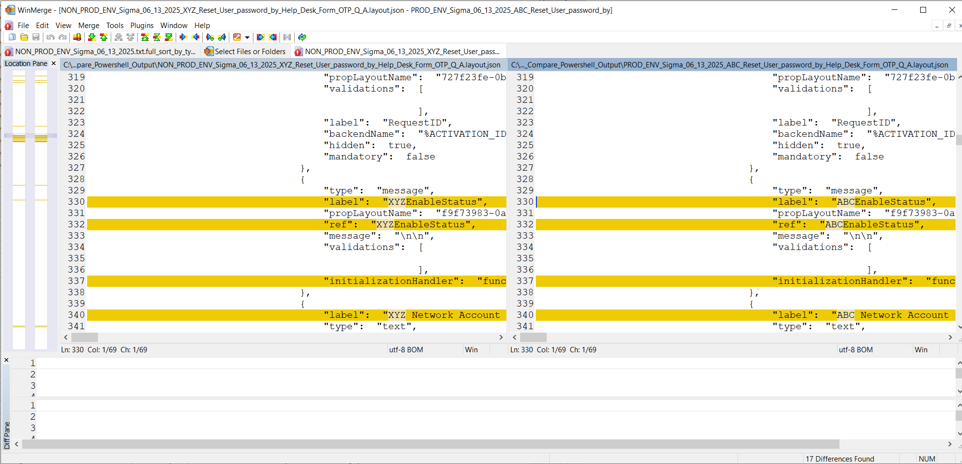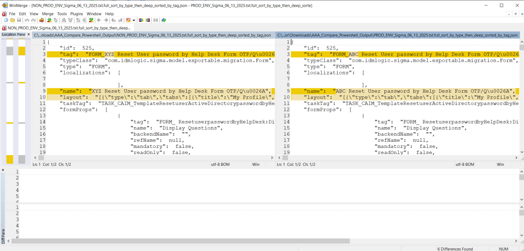 Use WinMerge or Beyond Compare to easily spot deltas between environments or versioned exports.